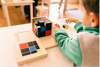 Ensuite, il y a un temps d’activité autonome qui dure 2h et demi le matin. Ce qui permet le respect du rythme de travail, la possibilité du libre choix de l’activité et la concentration de l’enfant dans son activité.
